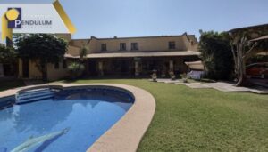 Desarrollada en dos niveles. planta baja y un primer nivel. cuenta con la siguiente distribución: planta baja (sala, comedor, cocina, 3 recamaras con baño completo, bodega, despacho, cuarto de lavado, cuarto de servicio con baño completo, patio de servicio, jardin, alberca); primer nivel (recamara principal, cuarto, terraza, bodega) y 4 cajones de estacionamiento.
